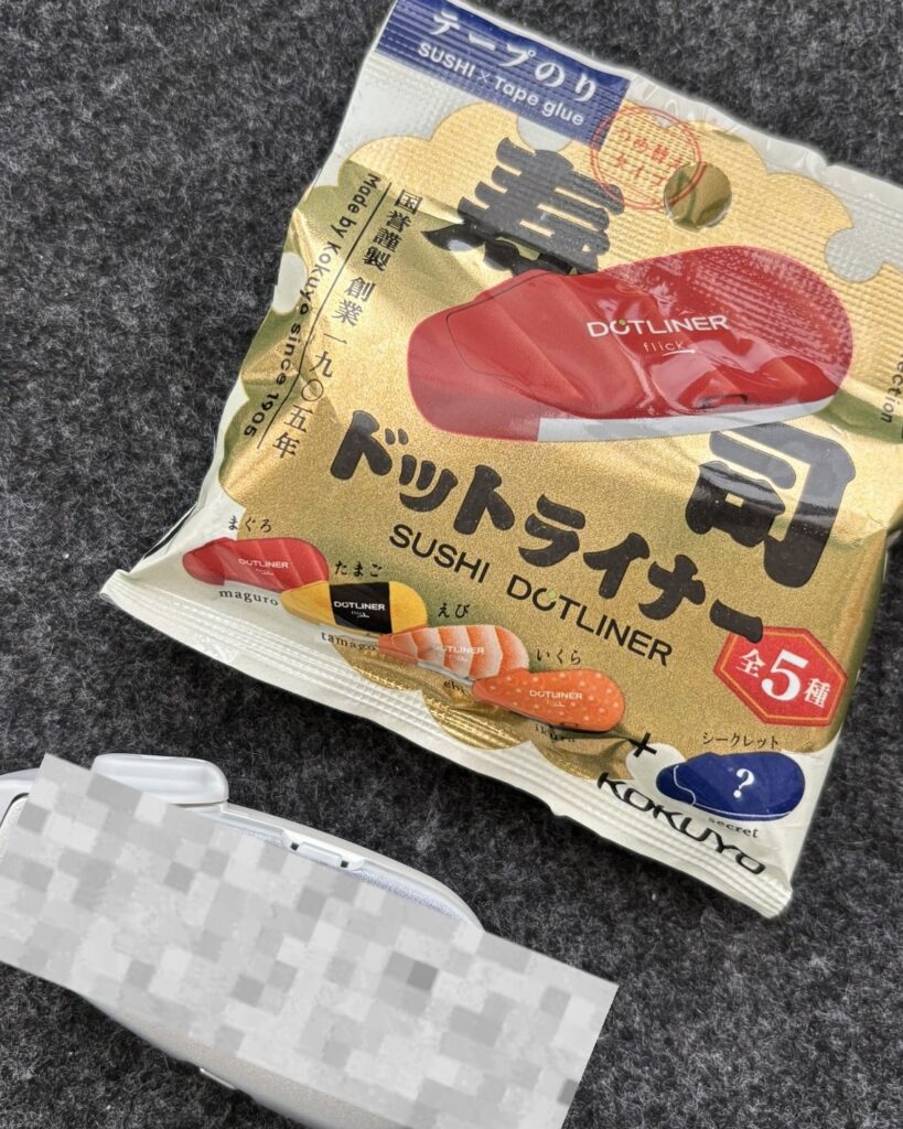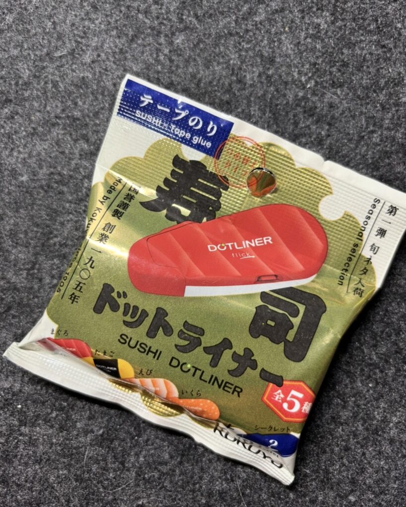この寿司ドットライナーは2005年に発売を開始したテープのり・ドットライナーシリーズの20周年を記念したアイテム!