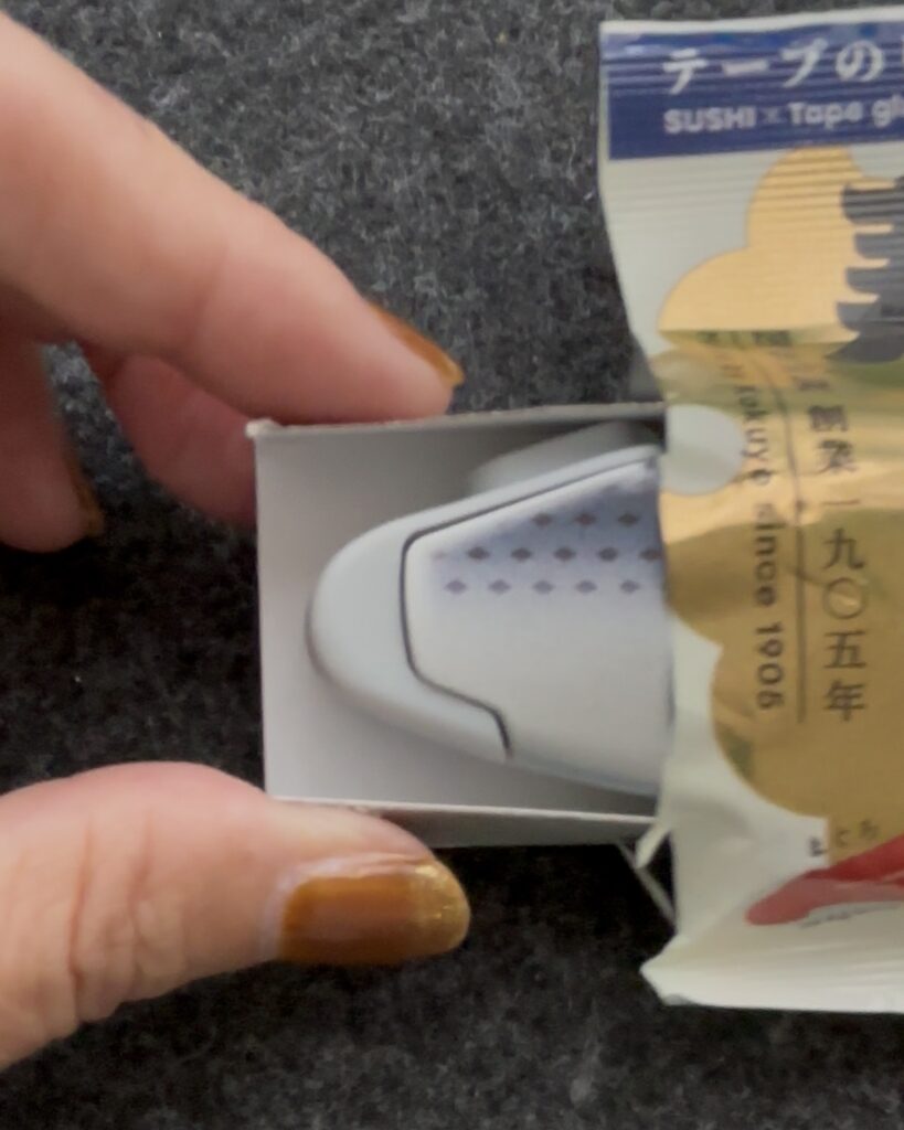 寿司をモチーフとした、まぐろ・たまご・いくら・えびの4種に加え、シークレットが1種で、開けるまで何が出るか分からないランダム商品なのです。