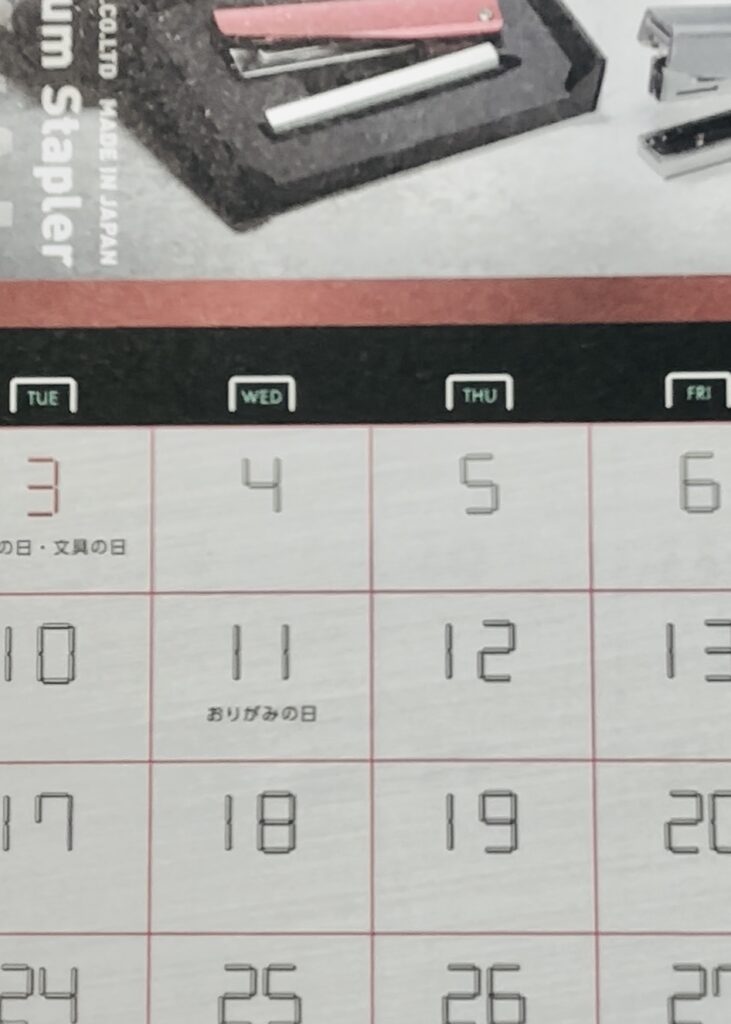 これはホチキスで有名なとあるメーカーさんなのですが、曜日のところと文字がホチキスになっているのが分かりますか?