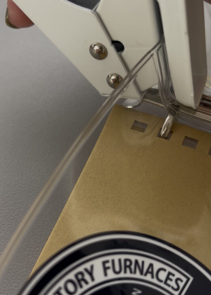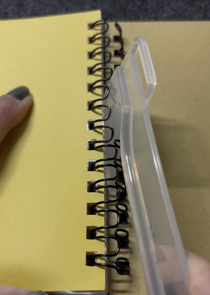 元々穴が開いてないクリアバインダーの背表紙には、すでに金具がついています。