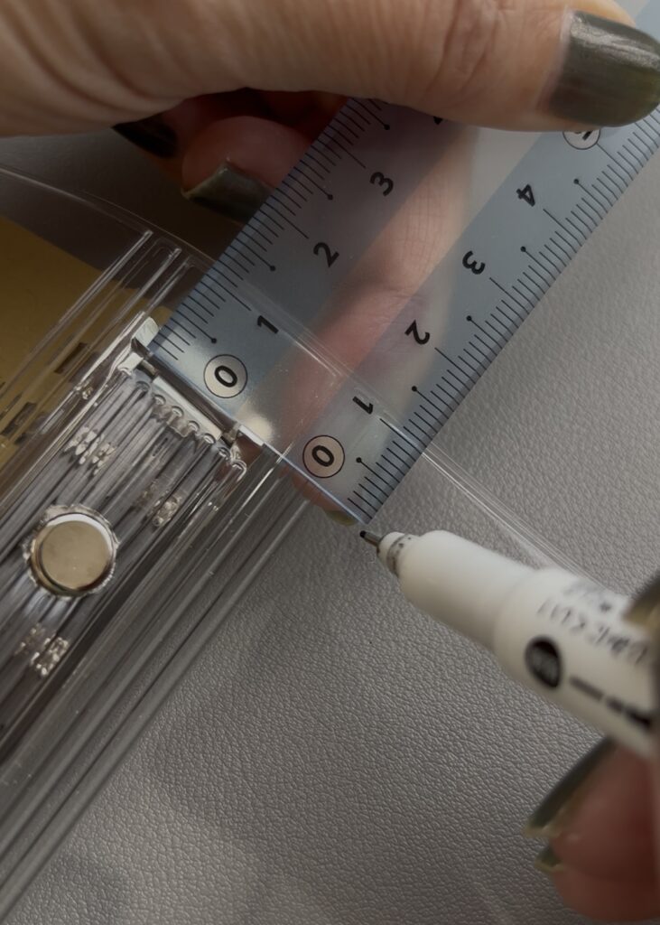 油性マジックで印を付けたら、印が見えやすいようパンチのカバーを外してから穴を開けます。