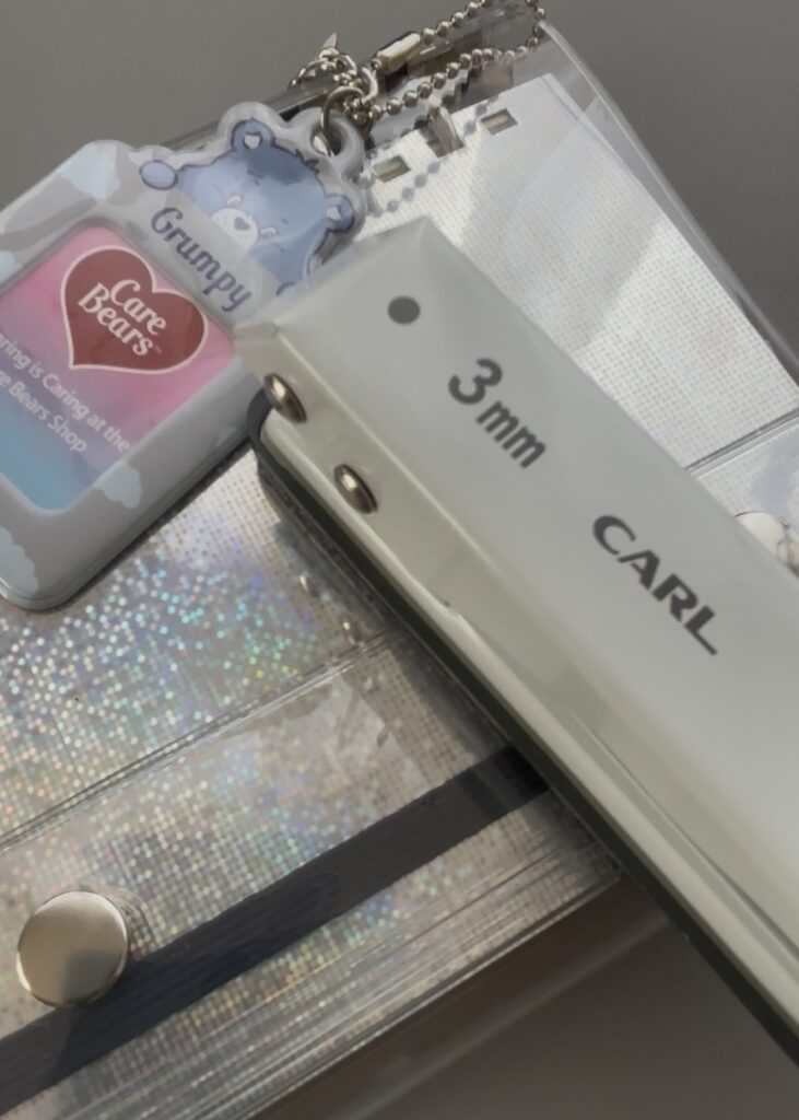 一般的な7㎜や5㎜は穴が大きすぎて、クリアバインダーの端がたわんでしまう可能性があるので、3㎜がおすすめ。