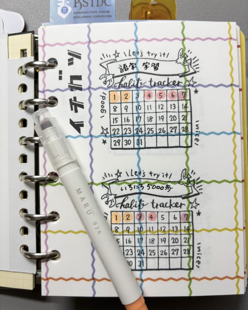 この【ミドリ・ハビットトラッカー】はテンプレートになっている浸透印で、気分も盛り上がるデザイン!