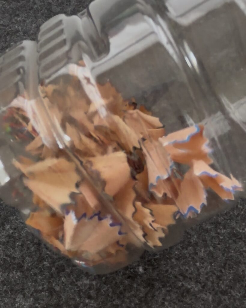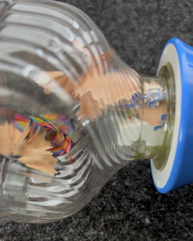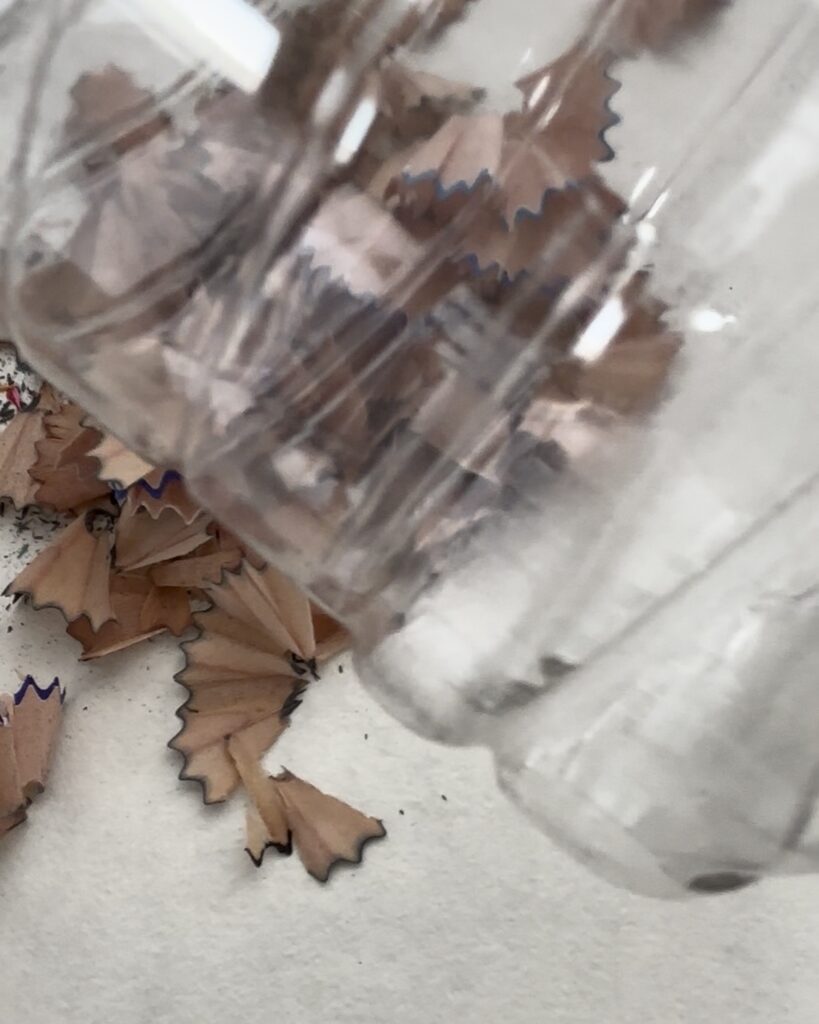 ペットボトルだからたくさん削りカスが溜められるし、何より溜まり具合を見て「これだけ勉強頑張ったんだ!」という心の励みにもなるのがいいですね~。