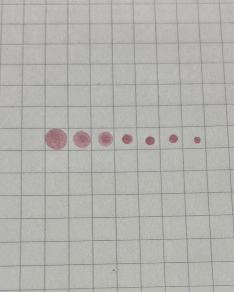 反対に軽く押すと小さな円になります。力をだんだん弱くしていくとこんな風になりますよ。