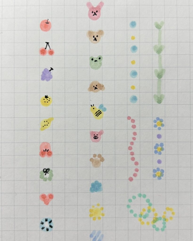 こういう風に色んな組み合わせで、動物だけでなく、お天気や季節のシンボル、区切り線などが描けます。